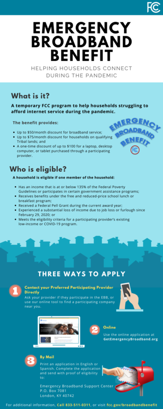 For more information about the Emergency Broadband Benefit Program, please visit:
