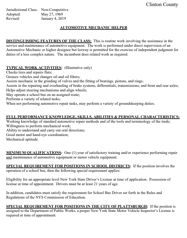 Automotive Mechanic Helper